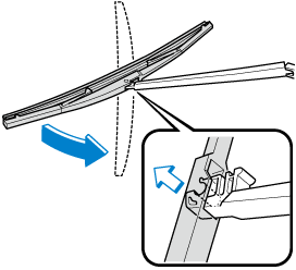 2. Firmly rotate the wiper blade to the right until it unlocks, then remove the blade.