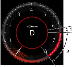 When the tachometer needle enters the STRIPED ZONE, this indicates to the driver that the gears should be shifted before entering the RED ZONE.