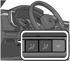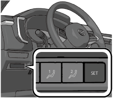The seat adjustment switch/SET switch/outer mirrors/active driving display for the driver's seat is operated to adjust the position.
