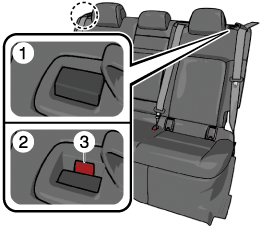If the red indication is visible, it means the seatback is not locked. If the vehicle is driven without the seatback locked, it could fold down suddenly and cause an accident.