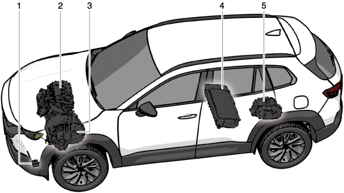 In EV mode, the vehicle is driven by the motor only using the electrical power stored in the high voltage battery.