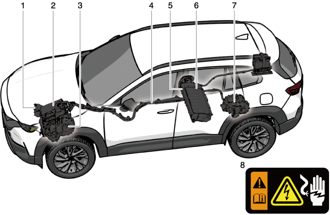 If the high voltage battery gets wet, it may cause a malfunction or vehicle fire.