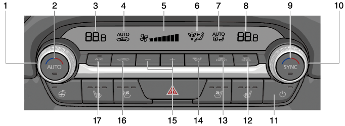 The display differs depending on the climate controls, or whether or not the seat warmer, seat ventilation and heated steering wheel are equipped.