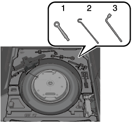 Remove the tiedown eyelet, the jack lever and the lug wrench or equivalent from the luggage compartment.