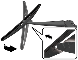 3. Raise the wiper arm and rotate the wiper blade to the right until it unlocks, then remove the blade.