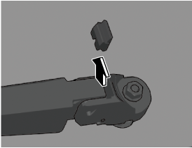 3. Slide the blade component in the direction of the arrow while pressing the wiper arm tab to remove the blade component from the wiper arm.