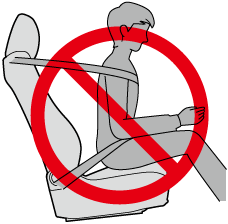 Lorsqu'un adulte ou un enfant de grande taille s'assied sur le siège du passager avant, la diminution du poids total assis sur le siège du passager avant requis pour le déploiement de coussin d'air est dangereuse. Les capteurs de poids du siège du passager avant détecteront la condition de poids total assis réduit et les coussins d'air avant et latéral, les coussins d'air pour les genoux et le système de dispositif de prétension de ceinture de sécurité du passager avant ne se déploieront pas en cas d'accident. Le passager avant n'aura pas la protection supplémentaire fournie par le coussin d'air, cela peut causer de graves blessures. La diminution du poids total assis sur le siège du passager avant peut annuler le déploiement du coussin d'air dans les conditions suivantes, par exemple: