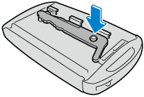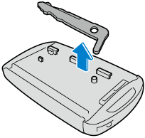 Retirez le couvercle inférieur tout en faisant glisser le bouton dans le sens de la flèche.