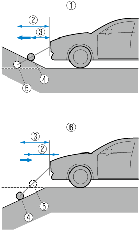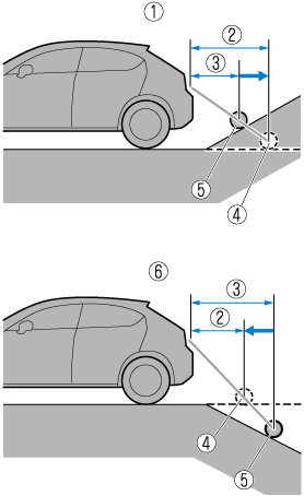 Il peut y avoir une certaine marge d'erreur entre la surface de la route apparaissant à l'écran et la surface réelle de la route. Une marge d'erreur de la distance perçue risque d'entraîner un accident; il faut donc être bien conscient des conditions suivantes qui sont plus susceptibles de produire des erreurs de perception de la distance.