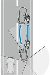 S'il existe un risque de collision avec un véhicule dans une voie adjacente lorsque vous essayez de changer de voie ou si vous risquez de dévier de la voie, l'assistance à la direction est activée.