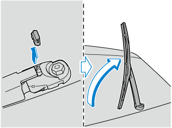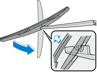 Tourner fermement le balai d'essuie-glace vers la droite jusqu'à ce qu'il se déverrouille, puis retirer le balai.
