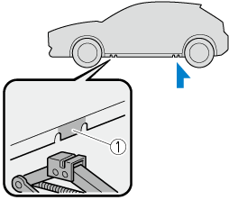 Lorsque le véhicule est monté sur un cric, toujours placer le levier sélecteur en position P, serrer le frein de stationnement et placer des cales de roue à la position diagonalement opposée au cric :