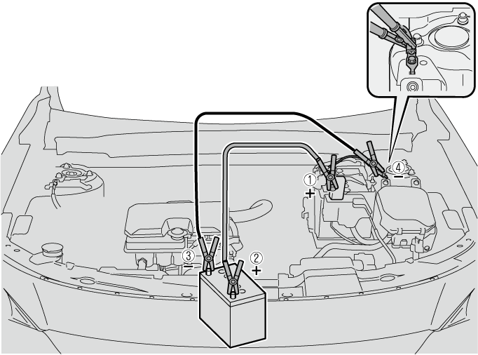 Ne pas effectuer un démarrage de secours du véhicule avec le câble de charge branché à votre véhicule. Sinon, le véhicule pourrait être endommagé.