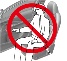 Lorsqu'un bébé ou un petit enfant s'assied sur le siège du passager avant, l'augmentation du poids total assis sur le siège du passager avant est dangereuse. Les capteurs de poids du siège du passager avant détecteront le poids total assis accru, ce qui pourrait causer le déploiement inattendu des coussins d'air avant et latéral, les coussins d'air pour les genoux et le système de dispositif de prétension de ceinture de sécurité du passager avant en cas d'accident et de graves blessures. L'augmentation du poids total assis sur le siège du passager avant peut entraîner le déploiement des coussins d'air avant, latéral et pour genoux du passager avant et du dispositif de prétension de ceinture de sécurité en cas d'accident dans les conditions suivantes, par exemple.