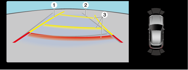 Lignes de guidage de largeur du véhicule (jaunes) |