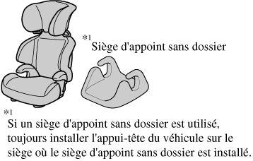 La position d'installation est déterminée par le type de système de dispositif de sécurité pour enfants. S'assurer de lire attentivement les instructions du fabricant et ce Manuel Conduite et Entretien.