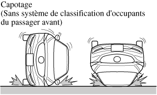 L'illustration suivante est un exemple d'un accident qui ne pas être détecté comme un capotage. Par conséquent, il est possible que les dispositifs de prétension de ceinture de sécurité et rideaux de sécurité avant ne se déploient pas.