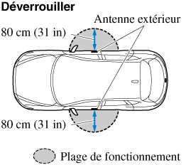 Le système risque de ne pas fonctionner à proximité immédiate des fenêtres ou des poignées de portières ou du hayon.