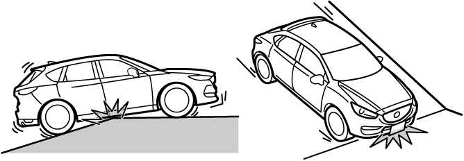 La suspension et le dessous de la carrosserie du véhicule peuvent être endommagés en cas de conduite sur des routes accidentées/irrégulières ou sur des dos d'âne à grande vitesse. Faire preuve de prudence et réduire la vitesse lors de la conduite sur des routes accidentées/irrégulières ou sur des dos d'âne.