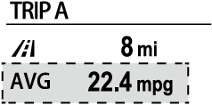 La consommation moyenne de carburant est calculée toutes les minutes à partir de la distance totale parcourue sur le compteur journalier et la consommation totale de carburant, et l'économie moyenne de carburant est affichée soit pour le TRIP A, soit pour le TRIP B.