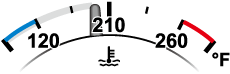 Affiche la température du liquide de refroidissement du moteur. La zone bleue de la jauge indique que la température du liquide de refroidissement du moteur est basse, et la zone rouge de la jauge indique qu'elle est élevée et en surchauffe.