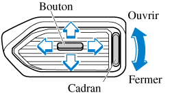 Pour régler la direction du flot d'air, déplacer le bouton de réglage.