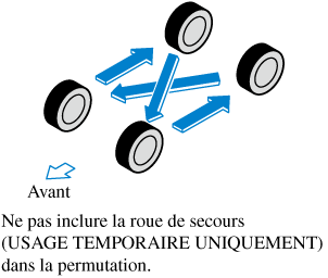 Après la permutation, veiller à régler les pressions de gonflage des pneus avant et arrière en fonction des spécifications (Rechercher) et vérifier le couple de serrage des écrous de roues.