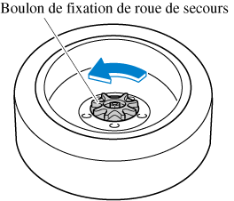 Sur les véhicules non équipés d'un haut-parleur de basses, tourner le boulon de fixation de la roue de secours dans le sens contraire des aiguilles d'une montre et retirer la roue de secours.