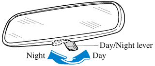 Push the day/night lever forward for day driving. Pull it back to reduce glare of headlights from vehicles at the rear.