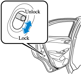 If you slide the child safety lock to the lock position before closing that door, the door cannot be opened from the inside. The door can only be opened by pulling the outside handle.