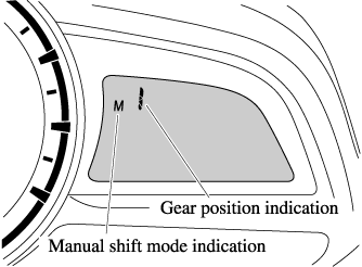 • If the automatic transaxle fluid (ATF) temperature becomes too high, there is the possibility that the transaxle will switch to automatic shift mode, canceling manual shift mode and turning off the gear position indication illumination. This is a normal function to protect the AT. After the ATF temperature has decreased, the gear position indication illumination turns back on and driving in manual shift mode is restored.