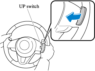 To shift up to a higher gear with the steering shift switches, pull the UP switch () toward you once with your fingers.