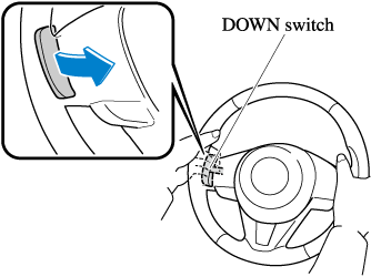 To shift down to a lower gear with the steering shift switches, pull the DOWN switch toward you once with your fingers.