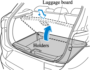 Pull the luggage board outward a little and insert the opposite end into the holders so that the luggage board stands.