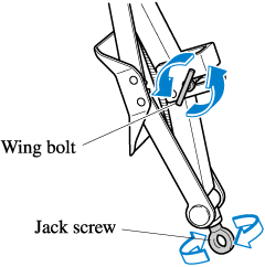 Insert the wing bolt into the jack with the jack screw pointing down and turn the wing bolt clockwise to temporarily tighten it.