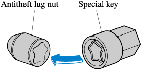 Turn the jack handle clockwise and raise the vehicle high enough so that the spare tire can be installed. Before removing the lug nuts, make sure your Mazda is firmly in position and that it cannot slip or move.