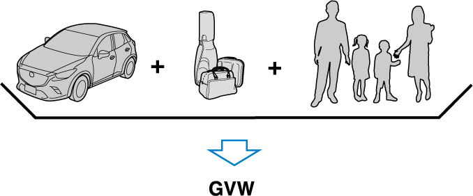 GAW (Gross Axle Weight) is the total weight placed on each axle (front and rear) - including vehicle curb weight and all payload.