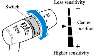 The sensitivity of the rain sensor can be adjusted by turning the switch on the wiper lever.