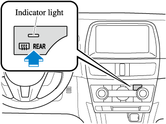 Press the switch to turn on the rear window defogger. The rear window defogger operates for about 15 minutes and then turns off automatically.