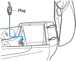 Pass the connection plug cord through the cutout of the console and insert the plug into the accessory socket.