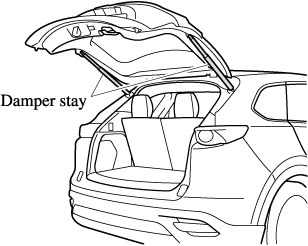 Do not modify or replace the liftgate damper stay. Consult an Authorized Mazda Dealer if a liftgate damper stay is deformed or damaged for reasons such as a collision or if there is some other problem.