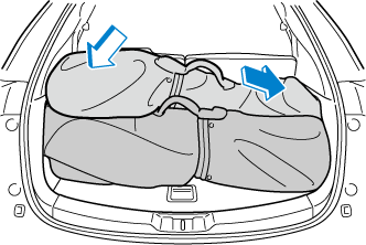 Place the bottom of the first golf bag into the depression on the left side of the luggage compartment trim. Set the top of the golf bag into the right side of the luggage compartment.