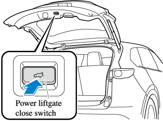Press the power liftgate close switch while the liftgate is fully opened. The hazard warning lights flash twice and the liftgate closes automatically after the beep sound is heard.