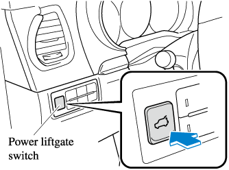 Press the power liftgate switch for about one second or more while the liftgate is in the fully closed/open position. The hazard warning lights flash twice and the liftgate opens/closes fully after the beep sound is heard.
