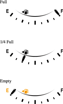 The display indicating a quarter or less remaining fuel has more segments to show the remaining fuel level in greater detail.
