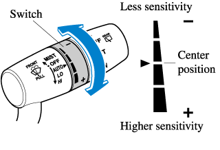 From the center position (normal), rotate the switch upward for higher sensitivity (faster response) or rotate it downward for less sensitivity (slower response).
