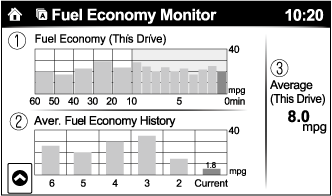 Displays the fuel economy for the past 60 minutes.