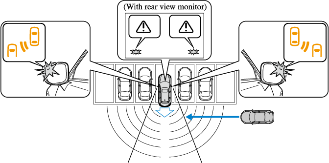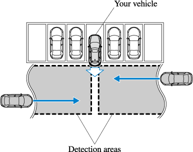 The Rear Cross Traffic Alert (RCTA) system detects vehicles approaching from the left and right sides of the vehicle while the vehicle is being reversed out of a parking space, and notifies the driver of possible danger using the Blind Spot Monitoring (BSM) warning indicator lights and the warning buzzer.