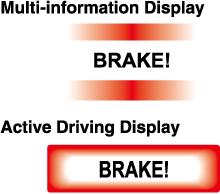 If your vehicle rapidly closes in on the vehicle ahead because the vehicle applies the brakes suddenly while you are traveling in headway control, the warning sound activates and the brake warning is indicated in the display. Always verify the safety of the surrounding area and depress the brake pedal while keeping a safer distance from the vehicle ahead. Additionally, always keep a safer distance from the vehicles behind you.