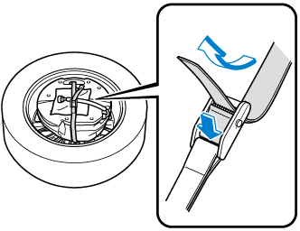When pulling the flat tire belts, wrap the buckle with a cloth. If the buckle directly contacts the aluminum wheel, the wheel may be damaged.